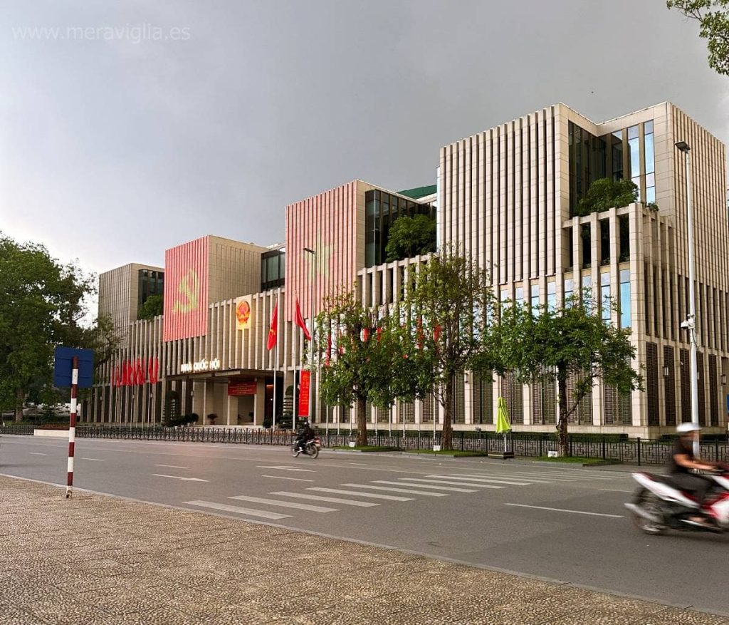 Vietnam es uno de los cinco países comunistas que existen en la actualidad. Por eso, lo que para ellos es normal, los símbolos comunistas, a mí me llamaba mucho la atención verlos tanto en edificios gubernamentales como por la calle en general. Es algo que inconscientemente asocio a la URSS y al siglo XX, y que me chocaba verlo «en directo». Además, en algunos sitios estaba la bandera con la hoz y el martillo en tamaño gigante, y sus colores rojo y amarillo hacen que llame más aún la atención.