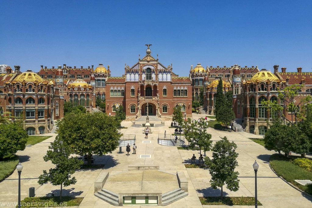 Después de visitar la Sagrada Familia y hacer una pequeña parada a almorzar algo con vistas al templo, caminamos por la Avenida de Gaudí hasta llegar al Hospital de Sant Pau. Este recinto modernista no es tan conocido, pero es realmente bonito y espectacular. Su arquitecto fue Lluís Domènech i Montaner, otro referente del modernismo catalán.