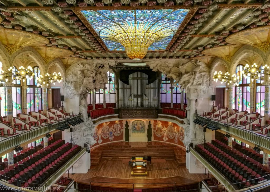Este último día fuimos en primer lugar al Palau de la Música Catalana a adquirir entradas para la próxima visita guiada en español. Como teníamos alrededor de una hora y media de margen, visitamos el fotomosaico \’El mundo nada en cada beso\’, popularmente conocido como el Mural del Beso, así como una parte del barrio Gótico que nos habíamos dejado el día anterior: el Claustro de la Catedral (de acceso gratuito), el Pont del Bisbe, un bonito arco gótico construido en el carrer del Bisbe, y la Plaza de San Jaime, donde se ubican el Ayuntamiento de Barcelona y el Palau de la Generalitat.