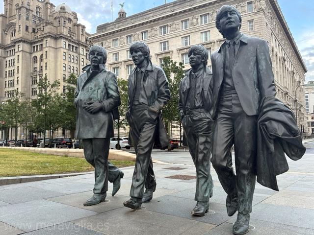 Si prefieres ir por tu cuenta, puedes buscas las distintas esculturas y murales que hay en la ciudad en honor a los Beatles. Comenzando por las esculturas, no puedes irte de Liverpool sin hacerte una foto con su obra más famosa: la que recoge a los cuatro Beatles caminando en pleno Pier Head.