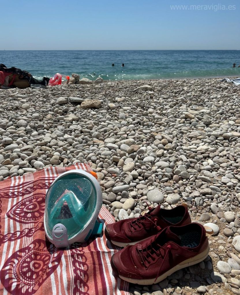 Como he comentado antes, como mínimo tendrás que caminar 750 metros hasta llegar a la playa (eso si llegas pronto y aparcas lo más cerca posible). Además, el camino tiene mucha cuesta y hay bastantes zonas sin sombra. Por ello, te recomiendo ir con calzado cómodo, llevar agua y no trasportar más peso del necesario. Ten en cuenta que a la vuelta es cuando tendrás que subir la cuesta.