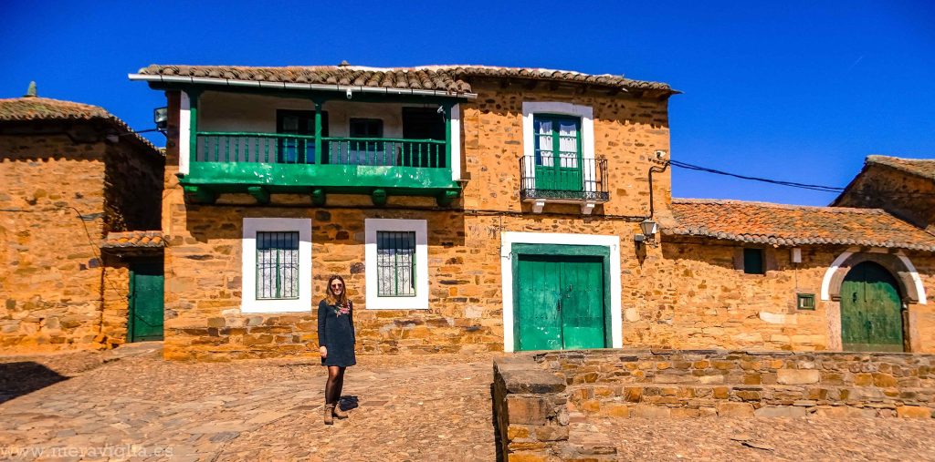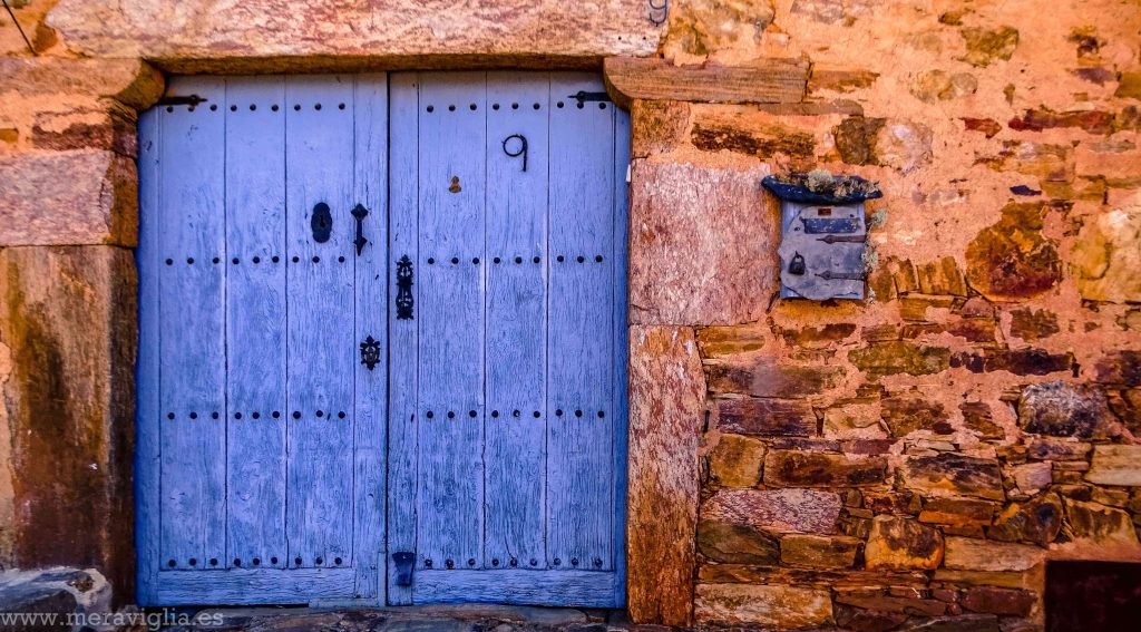Lo que hace diferente a esta población del resto es que está completamente construida en piedra: sus calles, las casas, la iglesia… todo tiene un tinte marrón y artesanal que lo hace especial. Además, la gran mayoría de las puertas de las viviendas están pintadas de diferentes tonalidades de verdes (y algunas en azul). Incluso las ventanas que son de madera, marcadas con un cerco blanco.