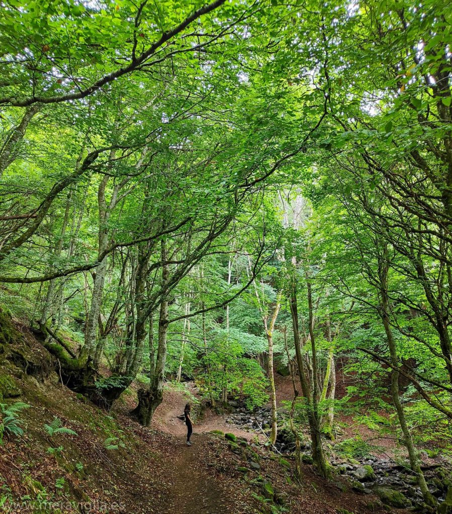 Hicimos la ruta del Bosc de Carlac, que transcurre en un impresionante hayedo que parece encantando. Es una ruta circular preciosa de unos 6.6 km y 340 m de desnivel (hay que tenerlo en cuenta, ya que la cuesta tiene lo suyo). Nosotros la comenzamos por el camino que hay pasando la iglesia, muy cerca del pequeño cementerio civil en el que únicamente descansa Teresa, cuya historia de «los amantes de Bausen» es realmente conmovedora.
