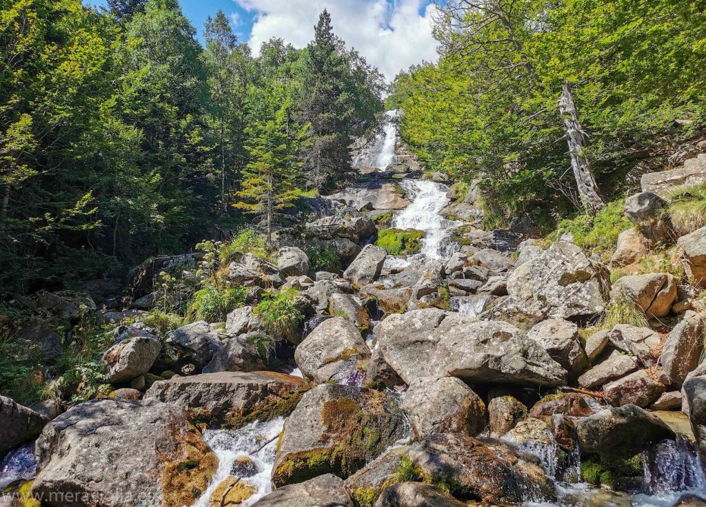 Admiramos la impresionante cascada e hicimos una pequeña ruta circular en la que subimos hasta la Artiga de Lin y bajamos por la carretera hasta el coche. Como curiosidad, el agua que sale por Uelhs deth Joéu proviene de los glaciares del Aneto. Este agua se cuela por el Forau d’Aigualluts y recorre de forma subterránea cuatro kilómetros hasta llegar aquí. Si quieres conocer el Forau d’Aigualluts y otros lugares del pirineo aragonés, te recomiendo este artículo sobre La Ribagorza.