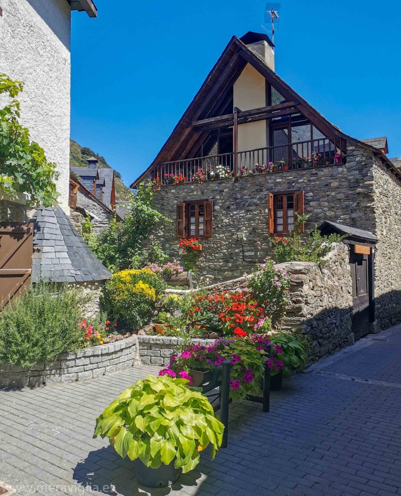 La cascada está muy cerca del parking, por lo que apenas hay que caminar. Estuvimos un rato disfrutando tranquilamente del entorno y nos volvimos. Después de visitar Vilac y comer en Vielha, fuimos visitando una serie de pueblos que forman parte de las Viles Florides (villas floridas), a cada cual más bonito y cuidado. Pasamos por Garós, Arties, Salardú y Bagergue (de mis favoritos).