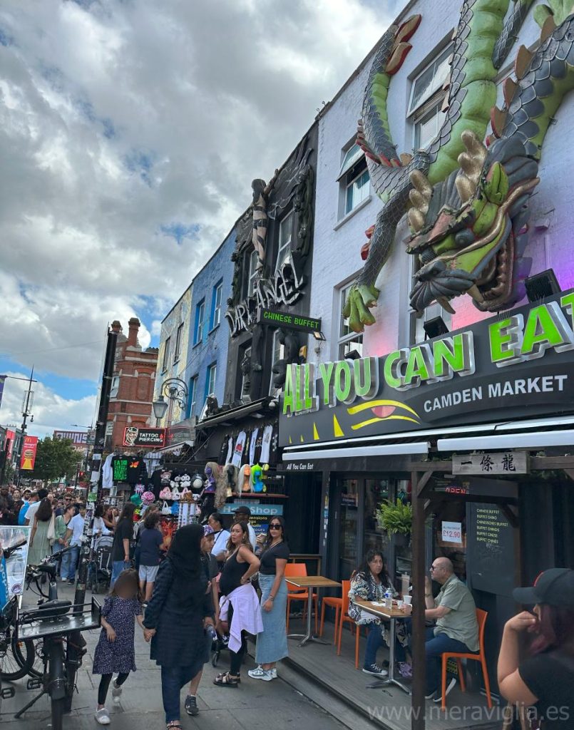 En Camden Towm comemos de la grandísima oferta de restauración que hay en Camden Lock Market, visitamos sus distintos mercados, hacemos alguna compra, entramos a la tienda Cyberdog (la tienda más surrealista que he visto nunca), paseamos por Camden High Street… y caminamos junto al canal para ver una obra original de Banksy (llegado al punto, hay que subir unas escaleras y está en la fachada de enfrente). Si quieres ayuda para conocer mejor el barrio, puedes hacer un free tour o una visita guiada por Camden Town.