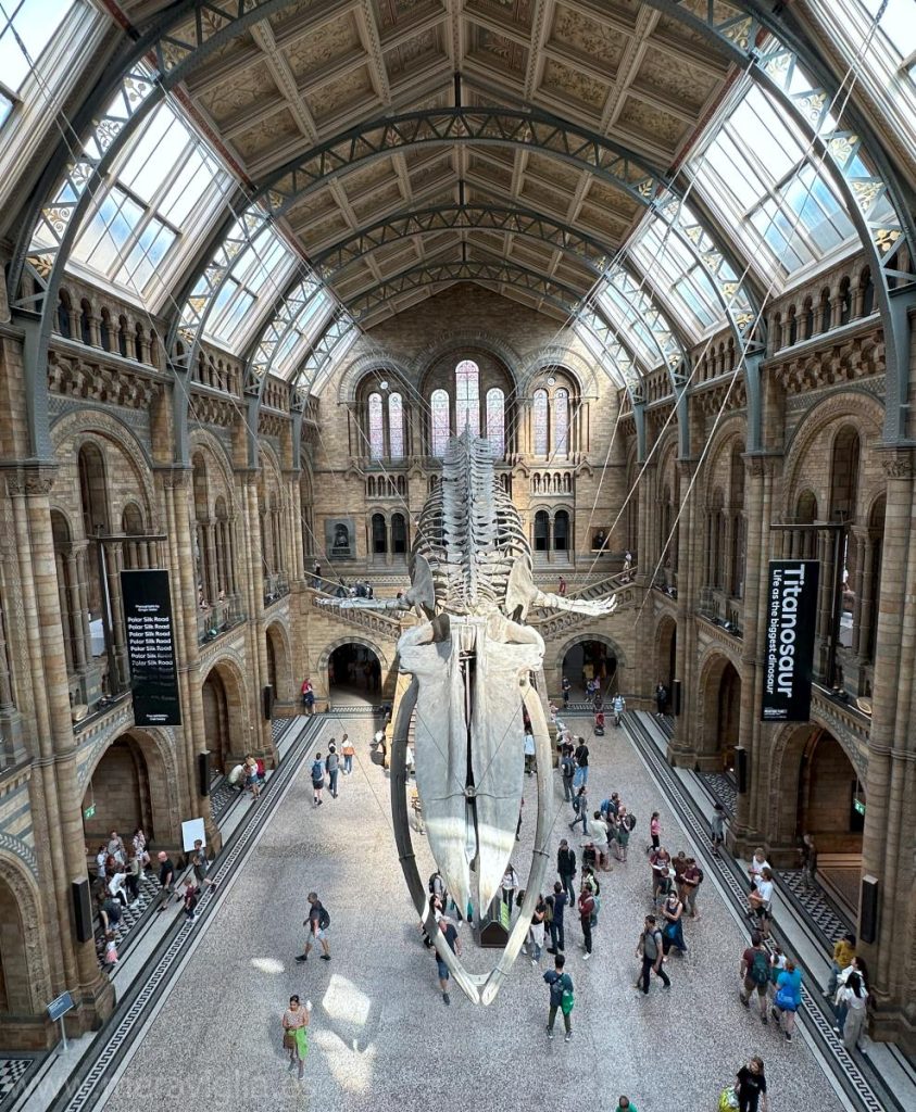 Nosotros nos alojamos por la zona de Kensington, así que comenzamos el día tomándonos un café para llevar mientras paseamos por Kensington Gardens (de verdad, qué delicia los parques y jardines de Londres). Rodeamos el Royal Albert Hall y accedemos al Museo de Historia Natural por el lateral sin tener que hacer cola, por la calle Exhibition Road (también gratis y con entrada reservada).