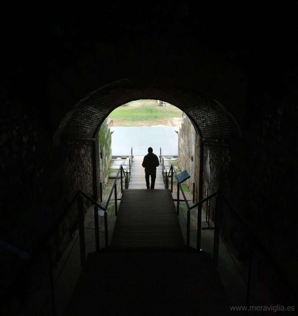 Por unos instantes avanzamos en el tiempo y nos vamos del antiguo Imperio romano a Al-Ándalus. Caminando unos diez minutos hacia el río se llega a la Alcazaba árabe. Esta fue construida en el año 835 por orden del emir Abderramán II. Entre las distintas partes que se pueden observar, a mí me llamó especialmente la atención la cisterna. Desde la muralla de la alcazaba se tienen unas buenas vistas del río Guadiana y el puente romano.