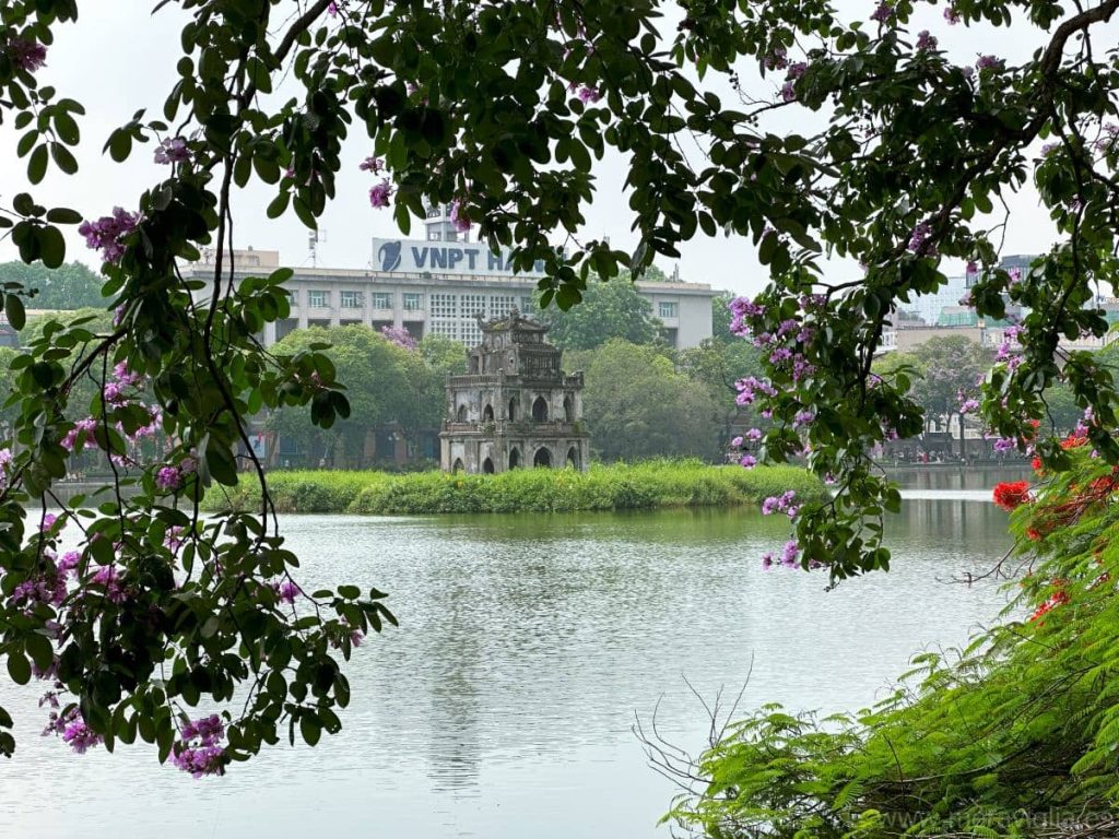 En una ciudad tan ajetreada como es Hanói, los grandes espacios verdes en los que respirar un poco de calma son de gran importancia. Por eso, entre los sitios imprescindibles que ver en la capital de Vietnam se incluye el lago Hoàn Kiem. Está en el centro de la ciudad y tiene una extensión de 12 hectáreas.