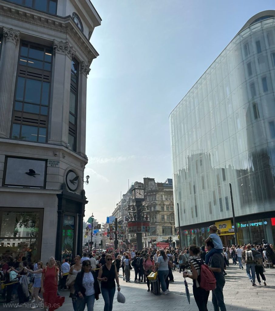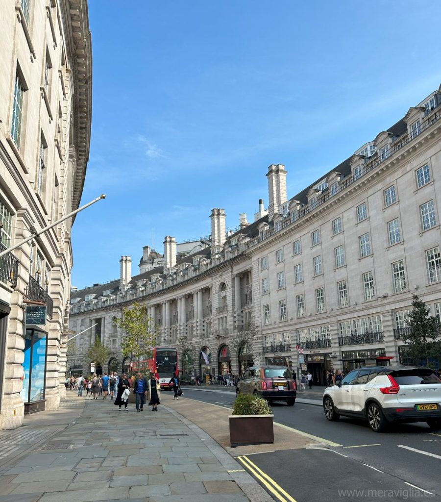 De Piccadilly Circus parte una de las calles más impresionantes de Londres: Regent Street. Esta es, además, una de las mayores calles comerciales de la ciudad, así que, si te gusta ir de tiendas o ver escaparates, no te la puedes perder. No obstante, además de las tiendas, esta calle llama la atención por los señoriales edificios de estilo georgiano que la forman.