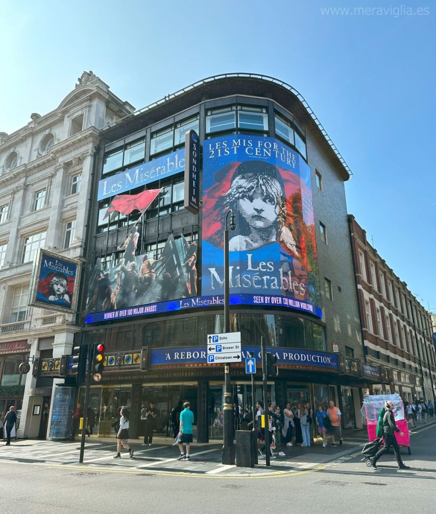 Shaftesbury Avenue es una larga avenida que llega hasta Piccadilly Circus y que podríamos llamar la calle de los teatros. Si caminas por ella, podrás observar numerosos teatros y auditorios donde se celebran espectáculos. Entre ellos, se encuentra el Queen\’s Theatre, lugar en el que se representa Los Miserables, el musical en activo durante más tiempo del mundo.