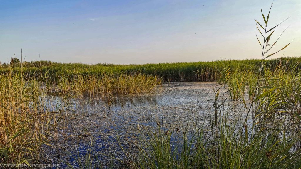 Comenzando la ruta por donde te he indicado, pronto llegarás a la zona más espectacular y fotografiable del humedal: una pasarela de madera que transcurre por encima del agua y deja un bonito paisaje (además, es una zona espectacular para ver el atardecer). Es entre el punto 3 y 5 del plano.