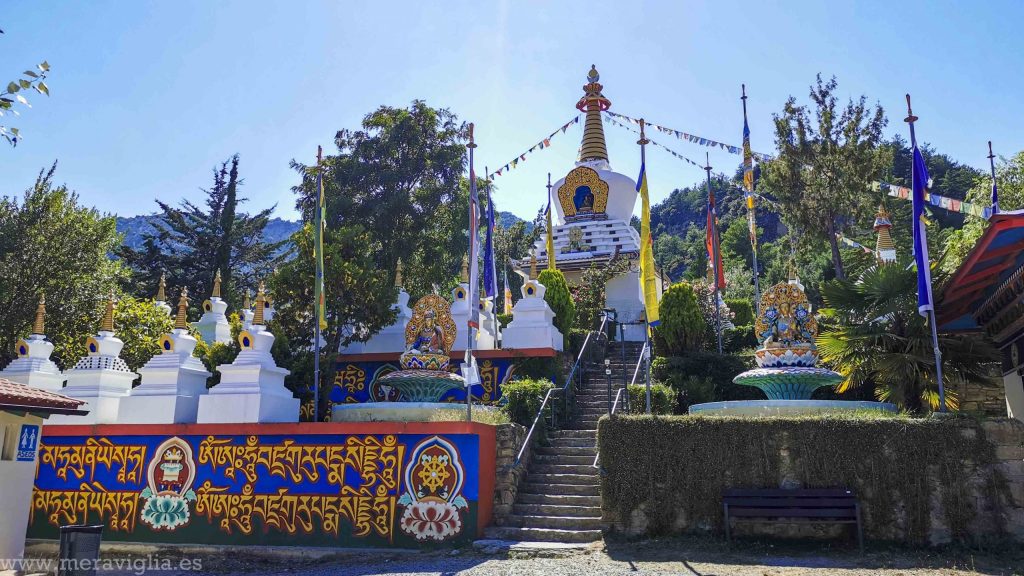 Por lo tanto, puedes llegar aquí en coche y pasar sin problemas a la zona donde se encuentra el templo (su interior solo se puede ver con visita guiada), la estupa y algunas estatuas. Es un sitio realmente bonito y tranquilo, así que si lo visitas recuerda respetar ese silencio y calma que tanto se respira aquí.