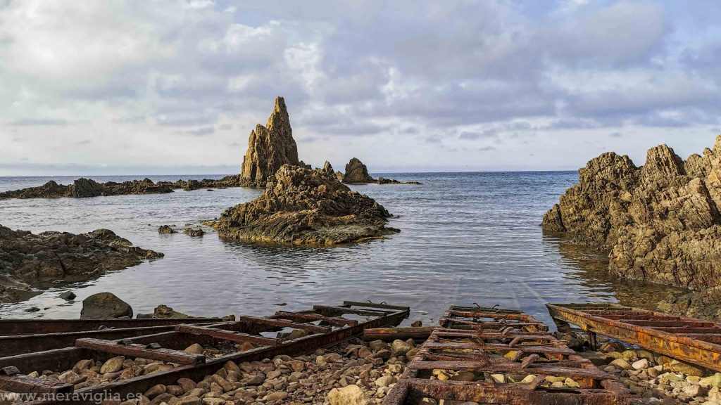 El segundo día madrugamos para llegar sobre las 8 al mirador de la Playa de los Muertos, desde donde se tienen unas vistas espectaculares de esta fantástica playa. De ahí hicimos un trayecto en coche de una hora para llegar al otro extremo del Parque Natural de Cabo de Gata, precisamente donde se encuentra el Faro del Cabo de Gata, para visitar un rincón mágico: el Arrecife de las Sirenas.