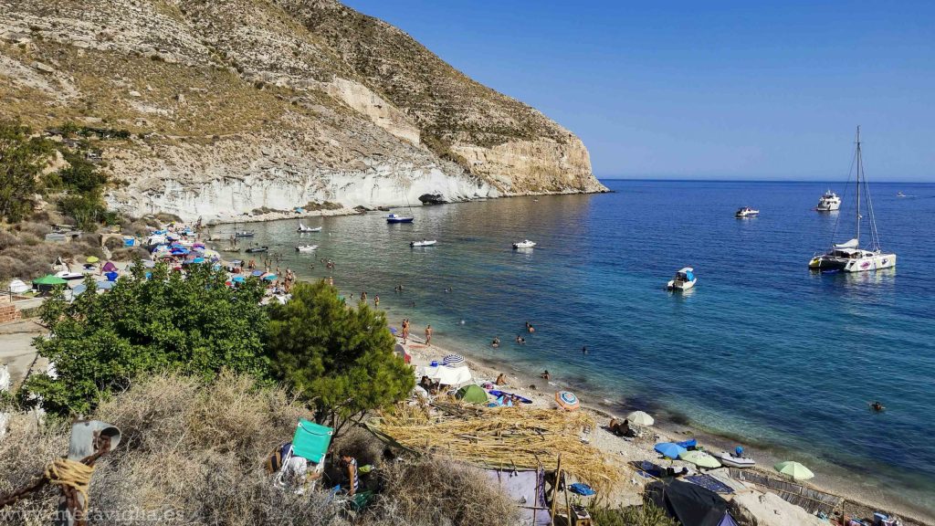 De la mina fuimos al Playazo de Rodalquilar. Si queréis tener unas buenas vistas de la costa, os recomiendo subir hasta la zona del Castillo de San Ramón. Además, fíjate en el suelo y las paredes de las calas, están todas cubiertas de fósiles marinos. Para terminar el día, fuimos a la población de Las Negras, que tiene un ambiente ibicenco, para dar un paseo y cenar.