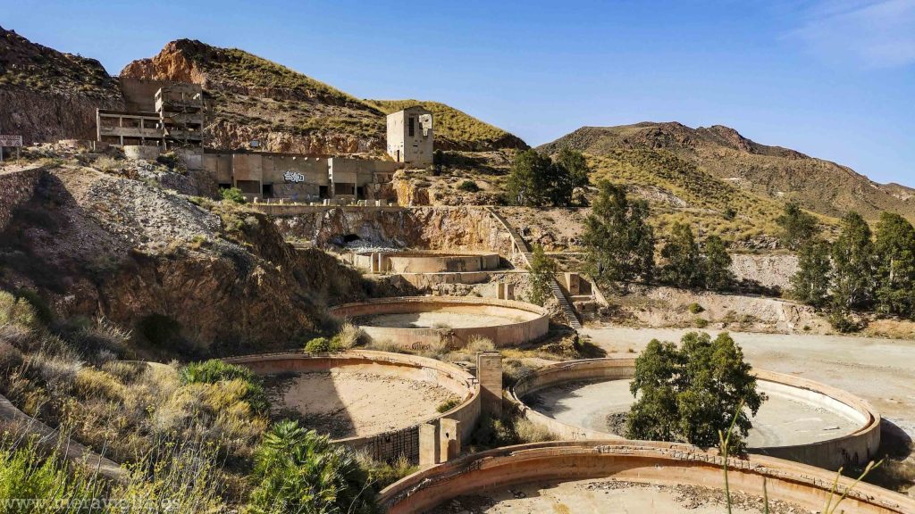 Tras esto, nos dirigimos a Rodalquilar para conocer su mina abandonada, un complejo minero en el que llegó a extraerse oro, pero que quedó totalmente paralizado en 1966 al terminarse los recursos. Resulta muy curioso caminar (con mucho cuidado) por este lugar abandonado. Cerca de la construcción principal, en el pueblo, están las casas de los antiguos mineros, también abandonadas y tapiadas. Se nota que en los alrededores se ha invertido dinero en conservar y dar a conocer el lugar, e incluso hay un Centro de Interpretación, pero al menos cuando nosotros fuimos, estaba cerrado.